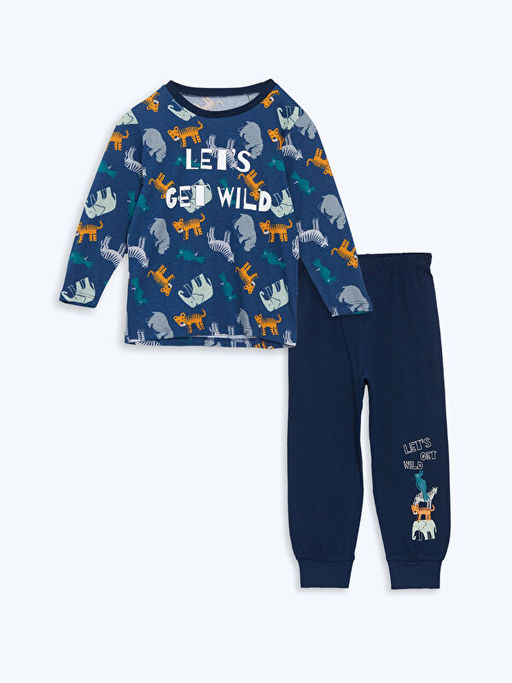 Beli Lastikli Bask?l? Erkek ?ocuk Pijama Tak?m
