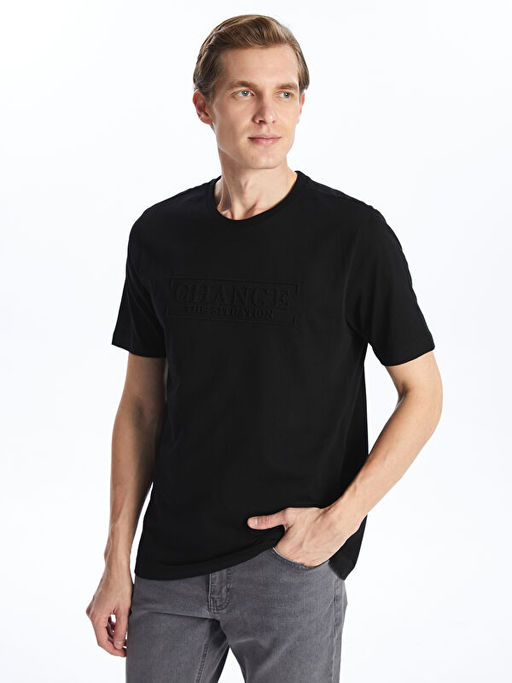 • Bisiklet Yaka K?sa Kollu Bask?l? Penye Erkek Ti??rt