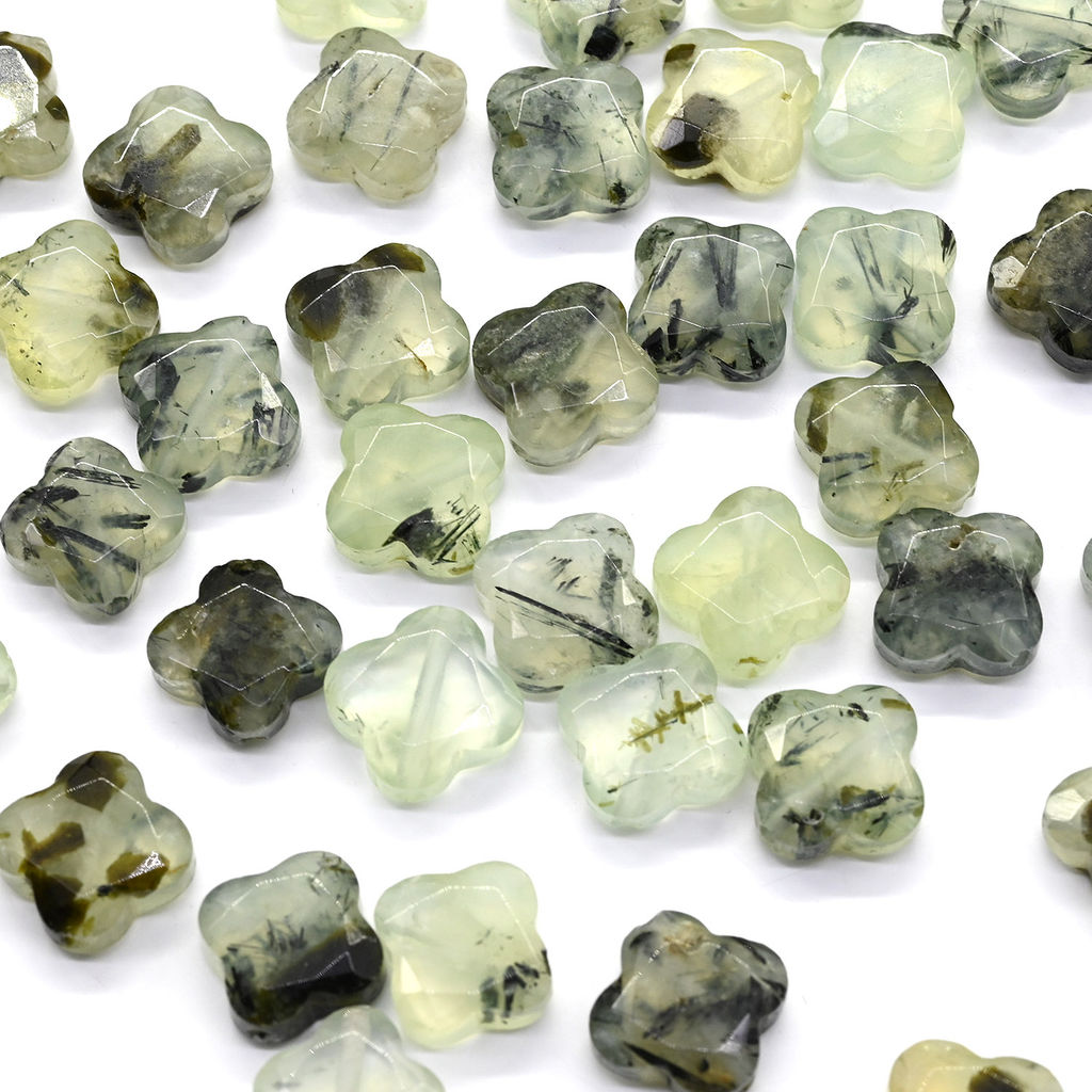 Бусина для рукоделия Клевер с гранями 13*13мм из пренита, 1 шт Радуга камня