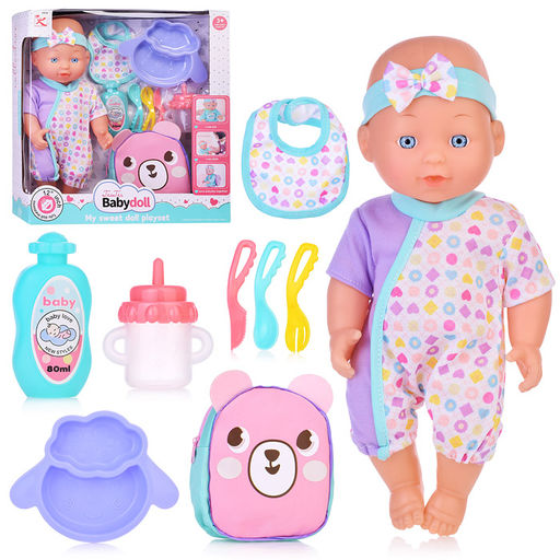 • В комплекте: рюкзак (11х4.5х13 см.), бутылка для кормления, тарелка, вилка, ложка, нож.