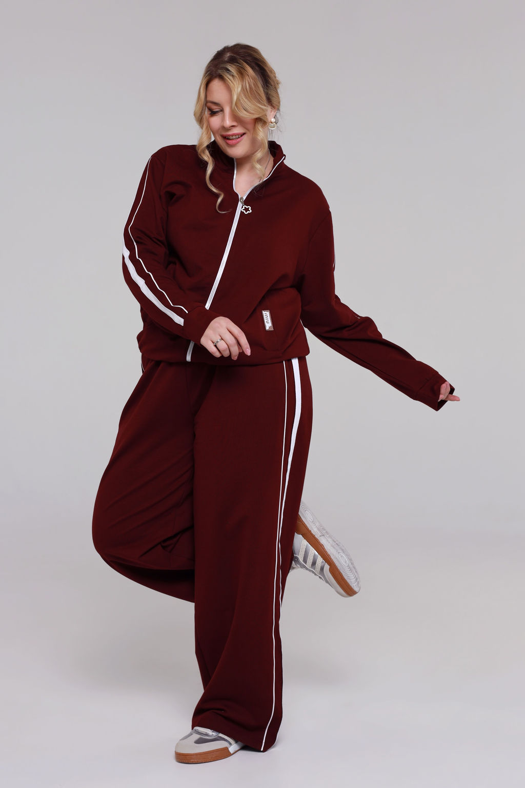 Костюм спортивный с белыми полосками по бокам и на рукавах бордовый­