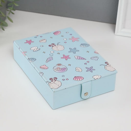• Шкатулка для украшений «Панда и ракушки», с зеркалом, искусственная кожа, голубая, 15×21.5×5.5 см