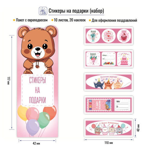 • Набор стикеров "На подарки ("ягодные")" 11*4см, 10 листов (9124)