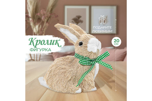Украшение Кролик от Elan Gallery станет оригинальным дополнением вашего интерьера. Размер изделия 17х13х20,5 см. Представляет собой милого сидящего крольчонка с клетчатым бело-зелёным бантиком на шее. Шёрстка выполнена из хлопчатобумажной нити. Настольная фигурка украсит интерьер гостиной или спальни и создаст тёплую атмосферу. Сувенир поможет привнести уют в вашу квартиру или дачу! Разместите игрушку на полке, тумбочке или рабочем столе, задействуйте в композиции с декоративными веточками и растениями или другими фигурками. Посадите зайку в плетёную корзинку и повесьте её на стенку, дверь или шкаф. Необычный элемент декора найдёт место в любой части вашей квартиры: в прихожей, гостиной, столовой или спальне. Это изящный и лёгкий способ добавить эстетики любому помещению. В коллекции бренда Элан Галерея вы найдёте множество как ярких, так и нежных декоративных украшений каждый обязательно подберёт сувенир на свой вкус. Они станут чудесным подарком для родных, близких и коллег. Наполните пространство вокруг себя радостью!