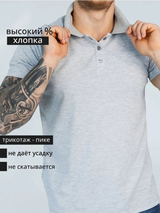 Спортивная футболка-поло Пике, 92% хлопок, 8% лайкра