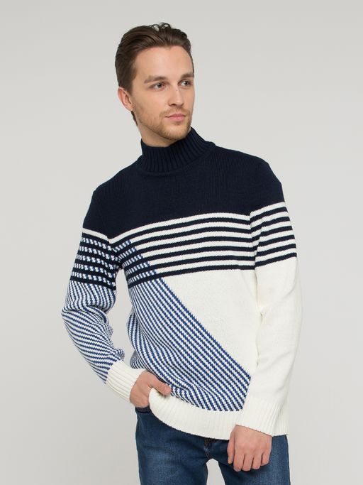 Джемпер мужской BY212-15004. 118/037/189 молоко/ниагара/т.синий