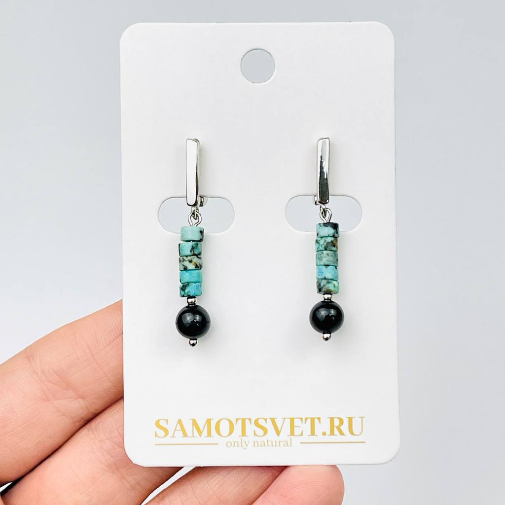 • Серьги из Хризоколлы и Турмалина "Шерл"