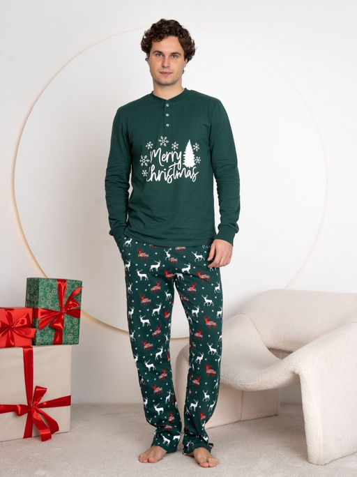 Представляем вам комплект мужской с новогодним принтом, выполненный из 100% хлопка. Эта пижама не только обеспечивает комфортный сон, но и создает праздничное настроение в зимние вечера. Яркий и стильный новогодний дизайн станет отличным дополнением вашего гардероба. Идеально подходит в качестве подарка на Новый год для любимого человека, друга или родственника. Убедитесь, что ваши праздники будут по-настоящему уютными с этой замечательной пижамой!