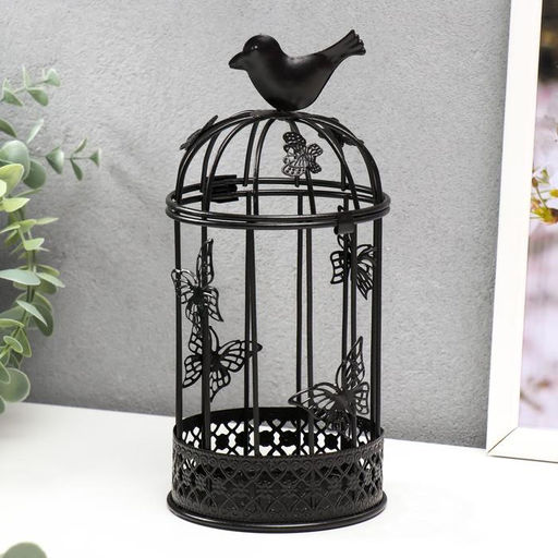 • Металлический подсвечник-фонарь 1 свеча «Птица и клетка с бабочками», чёрный, 21.5×10×10 см