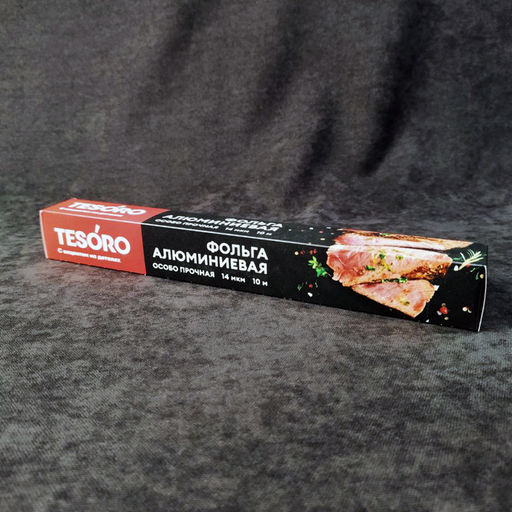Фольга алюминиевая ОСОБО ПРОЧНАЯ пищевая Tesoro 29 см, 10м, 14мкм арт. FOL291014, НЕВА ВЫВОД