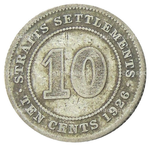 • Монета 10 центов 1926 года Стрейтс Сетлментс