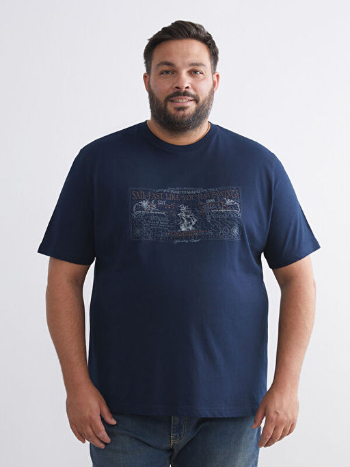 • B?y?k Beden Bask?l? Penye Erkek Ti??rt