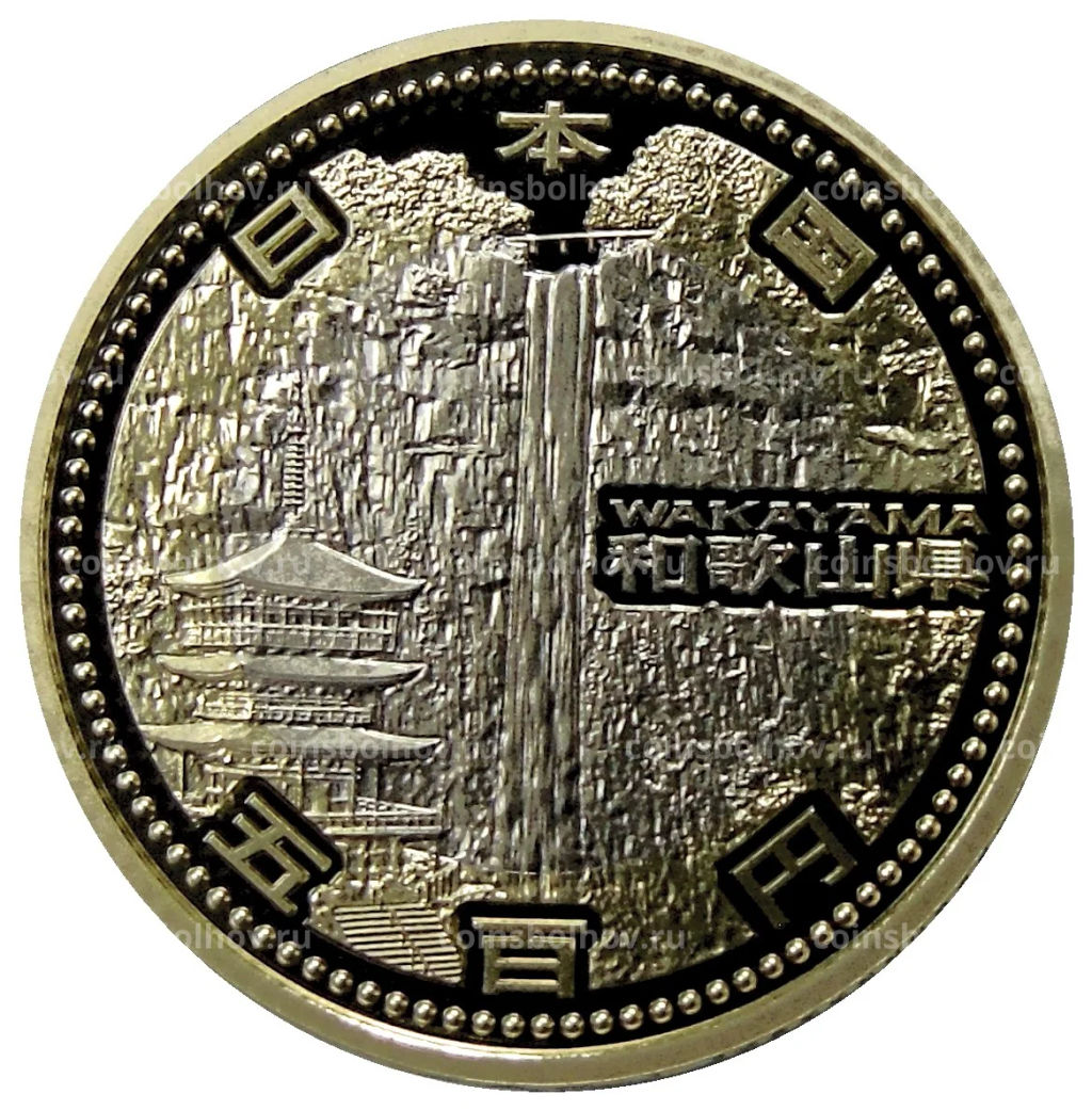 Монета 500 йен 2015 года Япония 47 префектур Японии Вакаяма (в коробке)