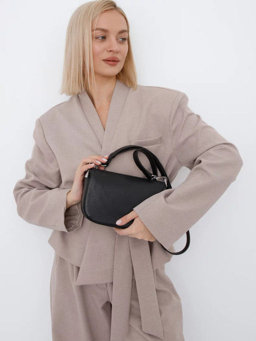 Сумка кросс-боди, выполнена из натуральной кожи. Дополнена серебристой фурнитурой. Данная модель закрывается на молнию, носится на плече или через плечо, в комплекте имеется ремень с регулировкой длины. Каркас полужесткий.