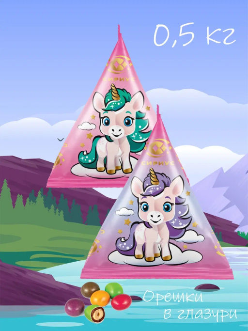 Кондитерская компания «Сириус» предлагает драже в яркой, красивой упаковке, которая не только привлекает внимание детей и взрослых, но также поднимает настроение! Изображение милого Единорога всегда радует детей, поэтому конфеты разлетаются вмиг!
