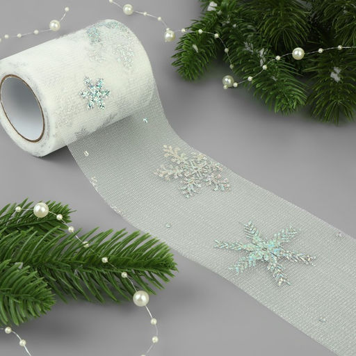 • Фатин со снежинками, с голографией, 7.5 см, 9.1±0.5 м, 11±1 г/м², белый №33