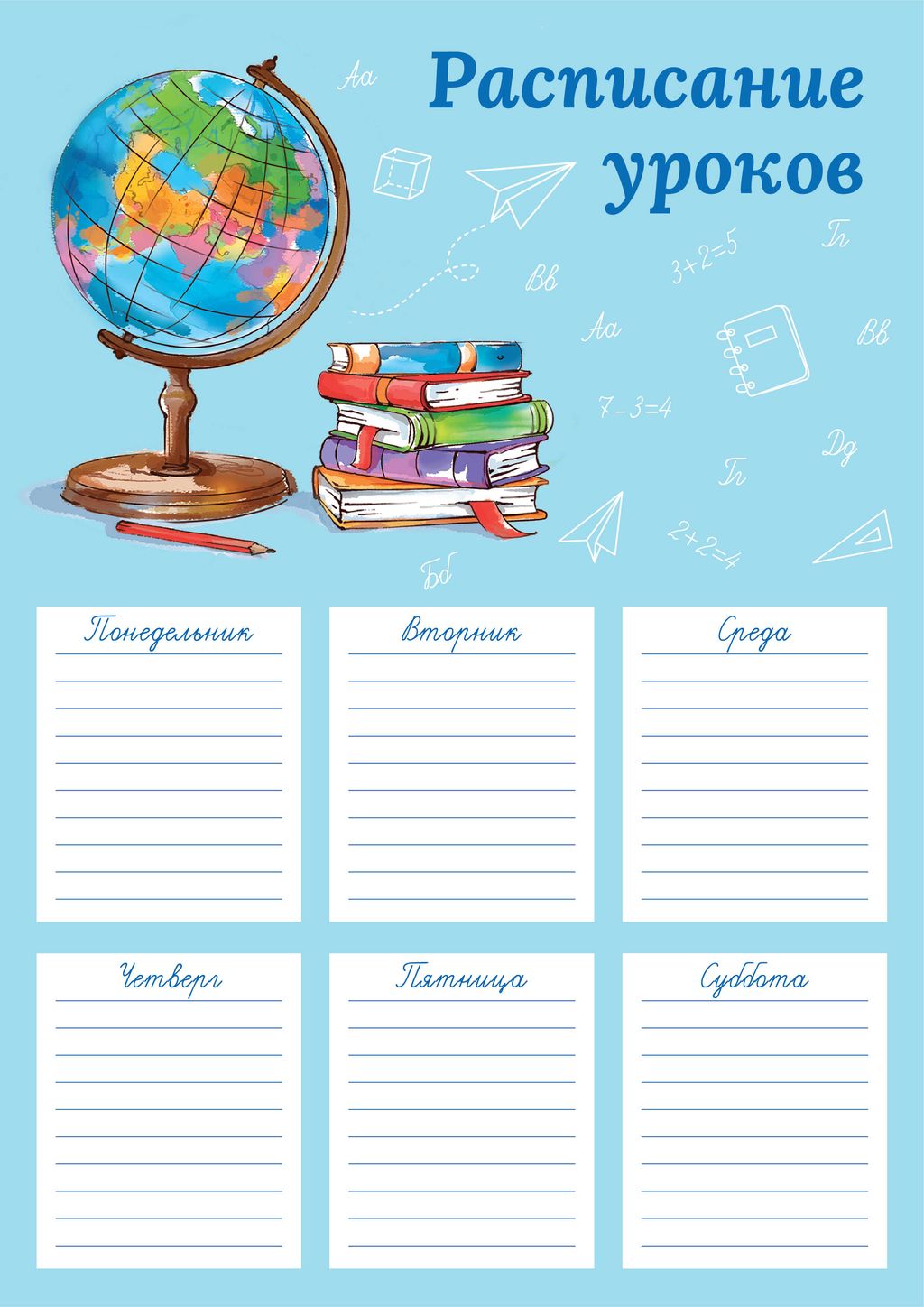 Расписание уроков арт. 60340/ 50 ПОРА В ШКОЛУ , А4, полноцветная печать, выборочный УФ-лак, мелованн