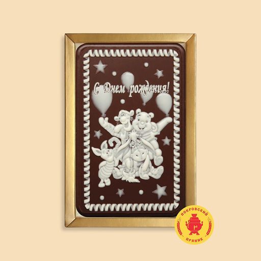 Традиционное тесто, изготовленное и выпеченное по старинным русским рецептам, покрывается слоем шоколадной глазури Премиум класса,на которую наносится тематический рисунок,