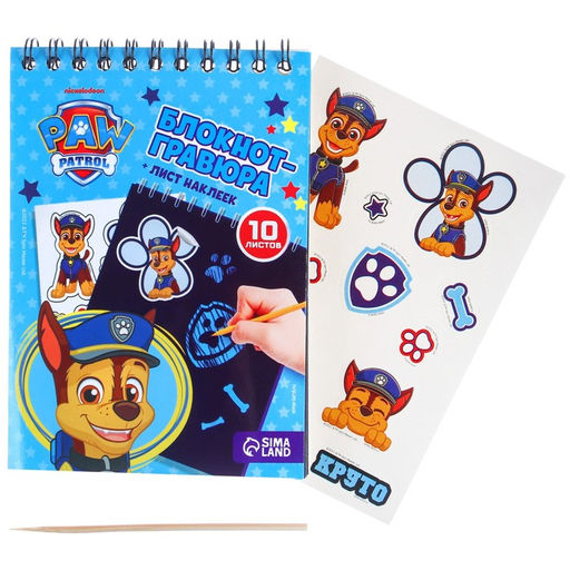 • Гравюра блокнот детский «Щенячий патруль», 10 листов, наклейки
