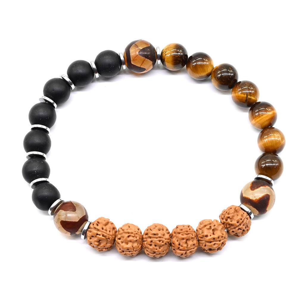 Браслет из шариков рудракши 10мм, натурального камня тигровый глаз и шунгит диаметром 8мм.