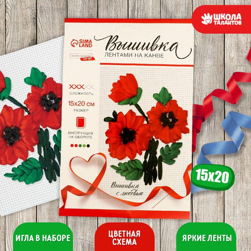 • Вышивка лентами на канве Красные маки, набор для творчества