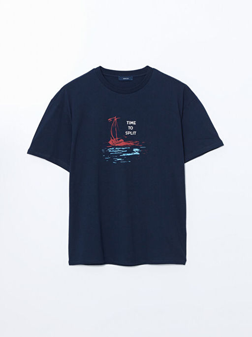 • Bisiklet Yaka K?sa Kollu Bask?l? Penye Erkek Ti??rt