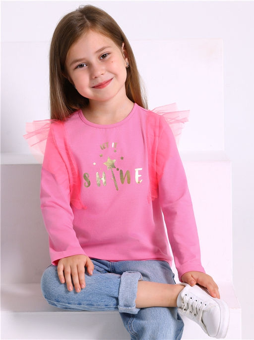 лонгслив,хлопок 90% + лайкра 8% + пэ 2%,кулир с лайкрой / хлопок 90% + лайкра 8% + пэ 2%,розовый268 / - / Сверкай золото / - / - / -,Лонгслив для девочки выполнен из легкого хлопкового полотна с лайкрой. Изделие прямого силуэта с длинными рукавами и округлым вырезом горловины, по спинке застежка на пуговицу, украшено оборками из воздушной сеточки и нежным принтом. Отличный выбор как для праздника, так и на каждый день. Уход: только деликатная стирка при температуре 40 градусов, без предварительного замачивания. Изделия с печатью и декором перед стиркой необходимо вывернуть на изнаночную сторону.