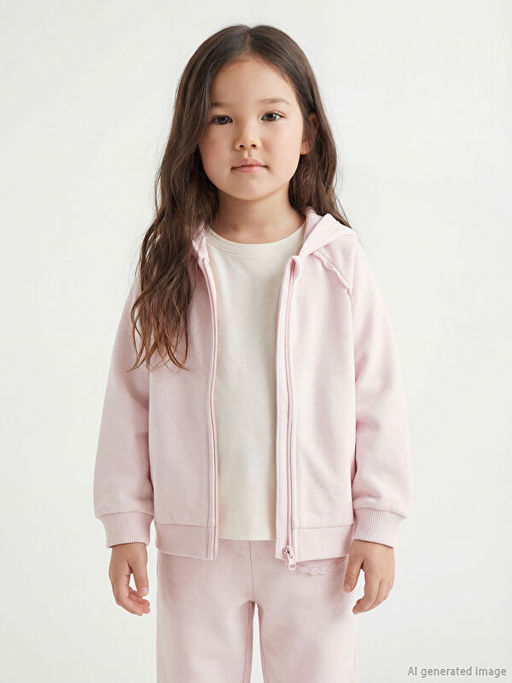 • Kap??onlu K?z Bebek Kal?n Fermuarl? Sweatshirt