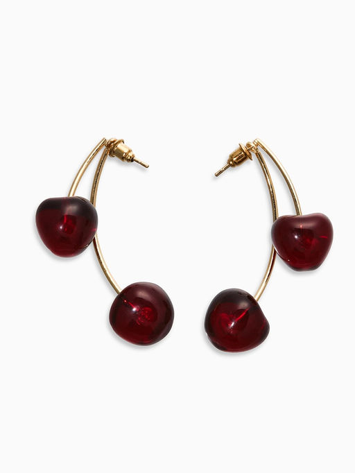 • Серьги "Черешня" двойные, цвет бордовый в золоте