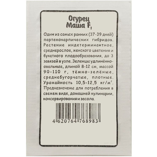 Маша F1 один из самых ранних партенокарпических гибридов: первые плоды уже на 3739 день! Удлинённо-овальные зеленцы длиной 812 см массой 90110 г плотные, среднебугорчатые, без горечи идеальны для салатов, консервации и засолки.