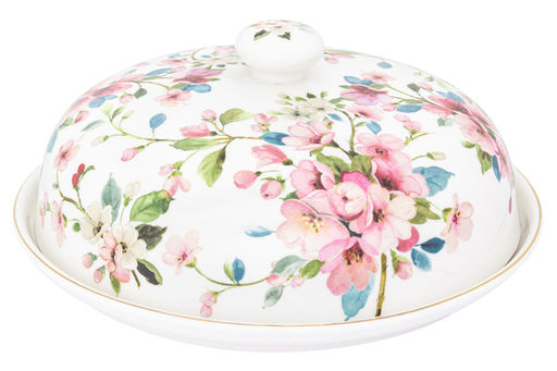 Блинница 23*23*9,5 см "Яблоневый цвет на белом" фарфор NEW BONE CHINA