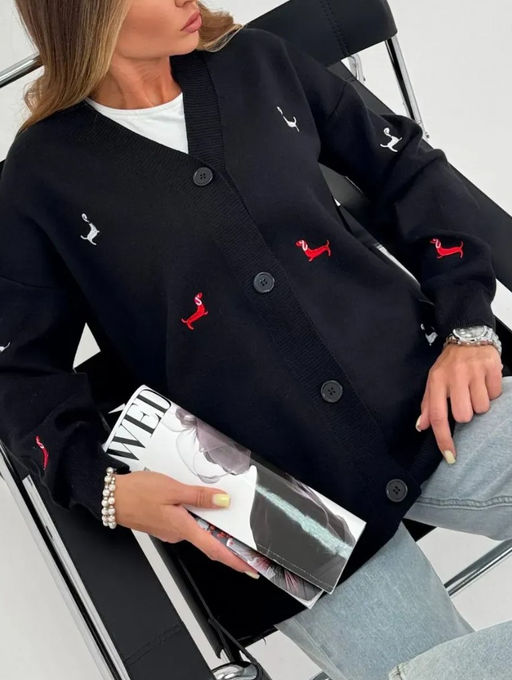 K13560 Кардиган с вышивкой (вязаный трикотаж) ЧЕРНЫЙ