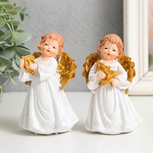 Фигурка полистоун «Праздничный ангел в белом платье», золотые крылья, 6×5×9.5 см, МИКС