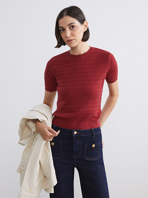 • Bisiklet Yaka Kendinden Desenli Kad?n Triko Kazak