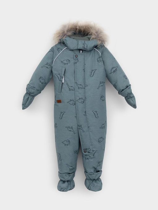 Зимний комбинезон ясельный с утеплителем Fellex®: 300 г/м2. Выполнен из мембранной ткани с дополнительной тефлоновой обработкой, которая предохраняет изделие от загрязнений и отталкивает влагу. Подклад выполнен из 100% хлопка. Комбинезон застёгивается на молнию и внешнюю планку на липучках, предусмотрена защита подбородка. Несъёмный капюшон имеет эластичную утяжку со стопперами и отстёгивающийся мех на молнии. Резинка по спинке для лучшего прилегания. На груди карман на молнии. По рукавам и низу изделия эластичные манжеты, на ножках отстёгивающиеся силиконовые штрипки. В размерах 74-80 и 80-86 в комплекте идут рукавицы и пинетки. Во всех изделиях верхнего ассортимента для безопасности ребёнка предусмотрены светоотражающие элементы.. Состав: верх: 80% полиэстер, 20% полиуретан; подклад: 100% хлопок; Утеплитель: 100% полиэстер