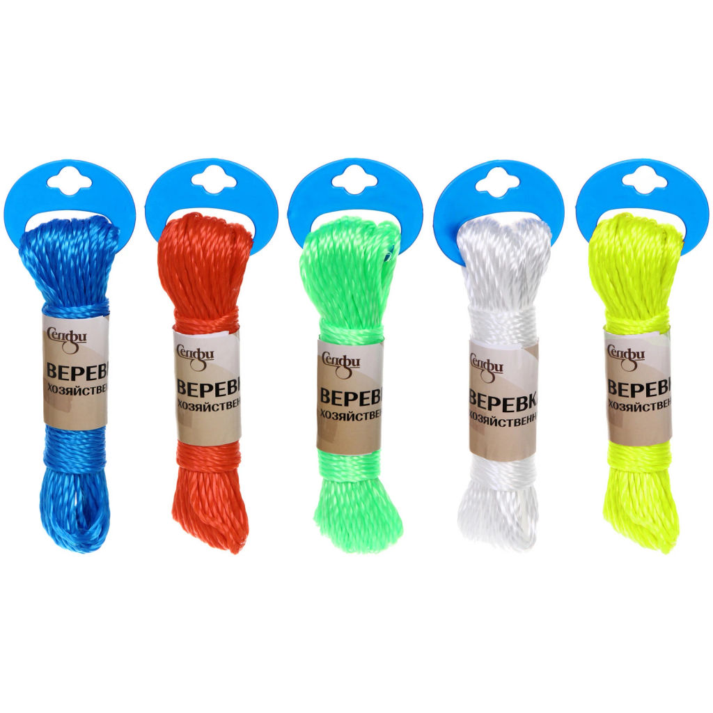 • Цена за 12 шт. Веревка хозяйственная Селфи, 3 мм, 20 м, микс
