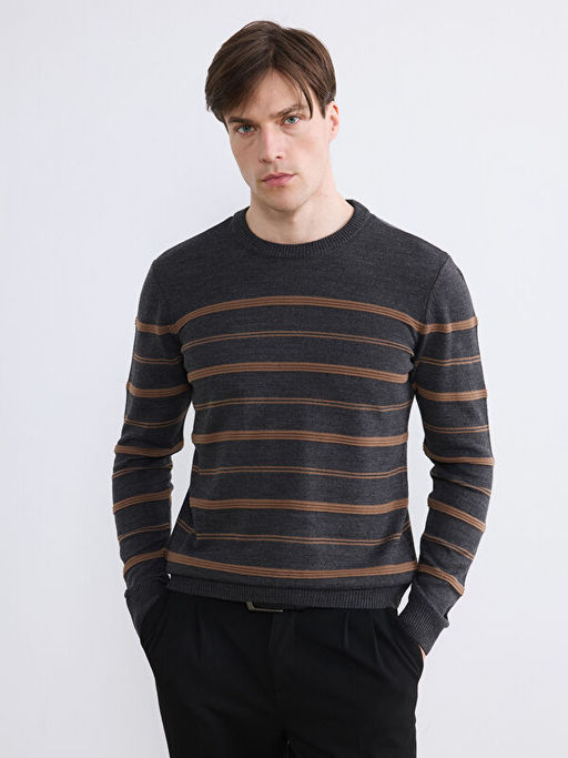 Bisiklet Yaka ?izgili Erkek Triko Kazak