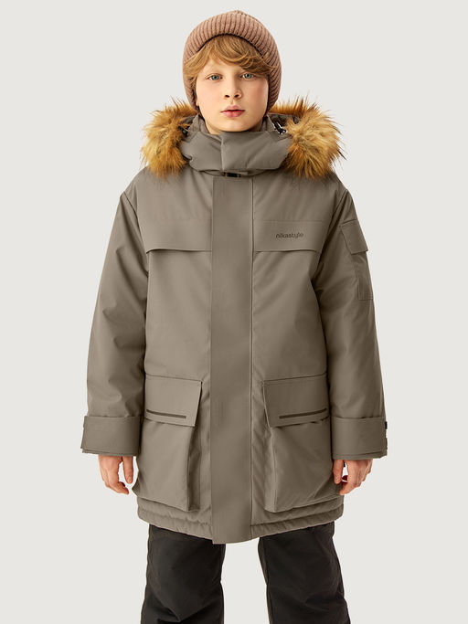 Размер: 152-76, 158-80, 164-84, 170-84 Сезон: ЗИМА Пол: Мальчик Категория товара: Куртки, парки Цвет: серый песок Мембранная одежда: Да Ткань верха: МЕМБРАНА Teflon WR 5000/5000 (100% полиэстер) Подкладка: флис + п/э (100% полиэстер) Температурный режим: от 0С до -30 С Утеплитель: fiberlite 300гр Мех опушки: искусственный