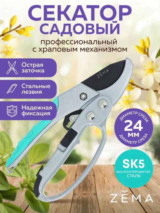 • Профессиональный садовый секатор "Zema" с храповым механизмом ZM3003
