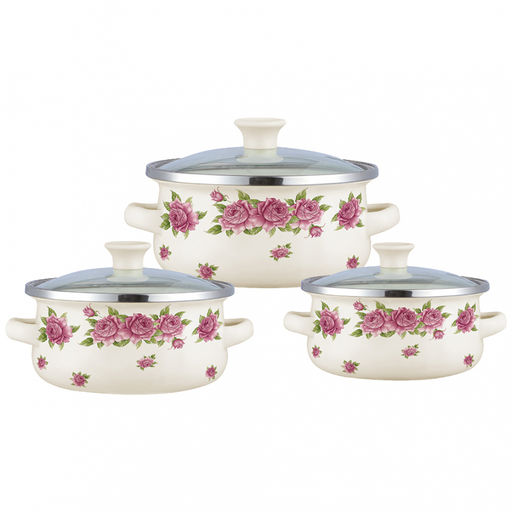 • Набор мини-кастрюль эмаль ZEIDAN 6 пр Roses (0,5л, 0,8л, 1,2л) с крыш, арт. Z-80635