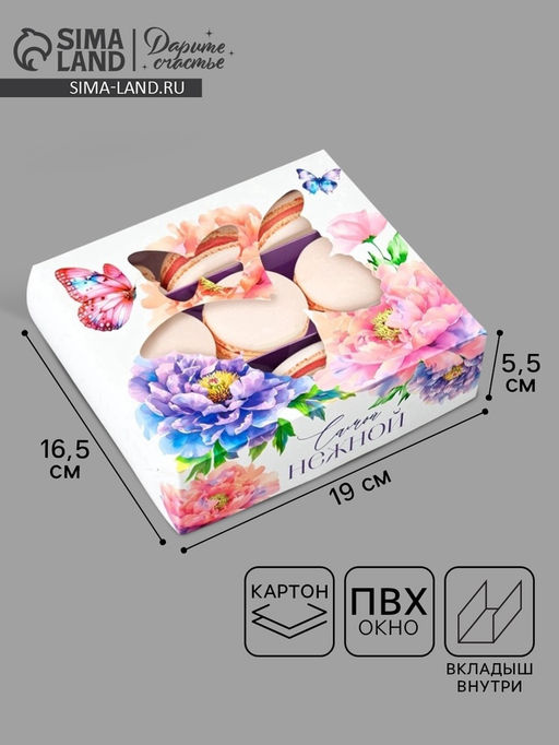 Цена за 5 шт. Кондитерская упаковка для макарун с окном, Самой нежной, 16.5?19?5.5 см