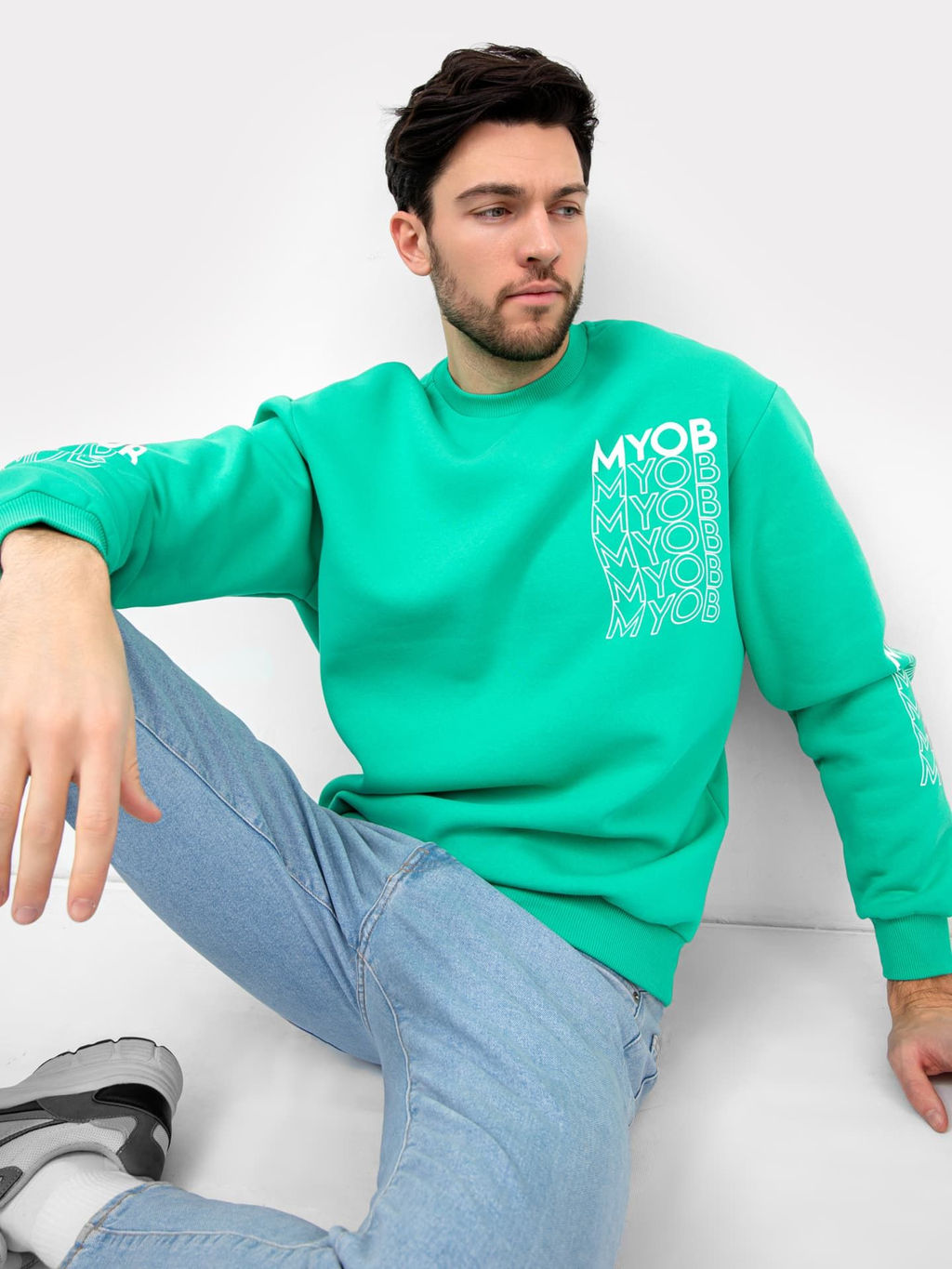 • Теплый прямой джемпер бирюзового цвета с текстовым принтом бирюза +печать 121801