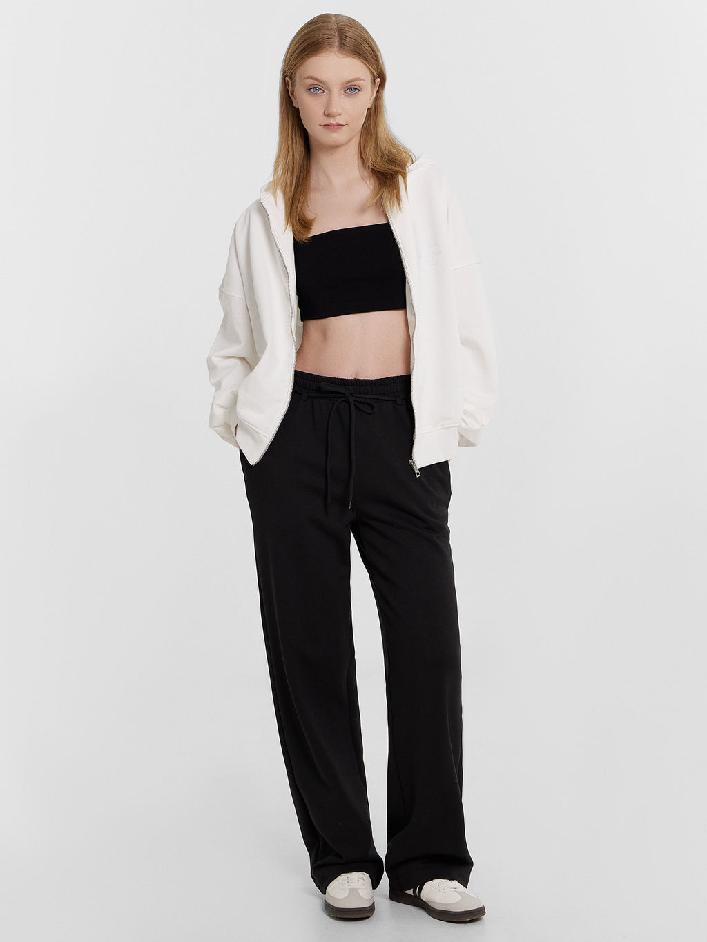 Женские свободные брюки идеально подходят для тех, кто ценит комфорт и стиль. Средняя посадка и боковые карманы обеспечивают удобство при носке, а эластичный пояс со шлевками, в которые втянут шнур в тон, добавляют функциональности и эстетичности изделию. Нижние срезы брюк аккуратно обработаны швом вподгибку, что придает изделию завершенность и аккуратность. Эти брюки легко сочетаются с различными элементами гардероба, создавая стильные и современные образы для любого случая. Добавьте их в свой гардероб и наслаждайтесь сочетанием комфорта и лаконичного дизайна каждый день.­