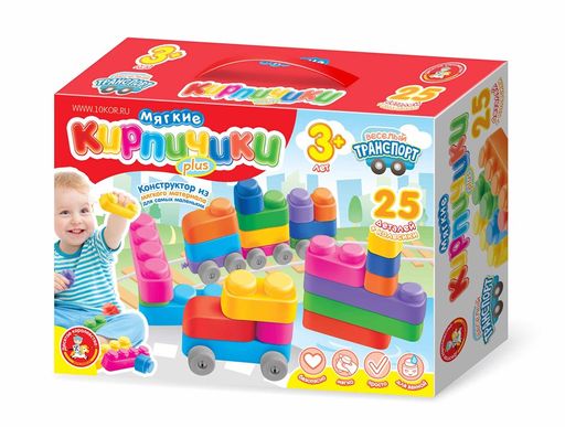 • Конструктор "Мягкие кирпичики. Веселый транспорт" 25 эл. + колесики (04034) "Десятое королевство"
