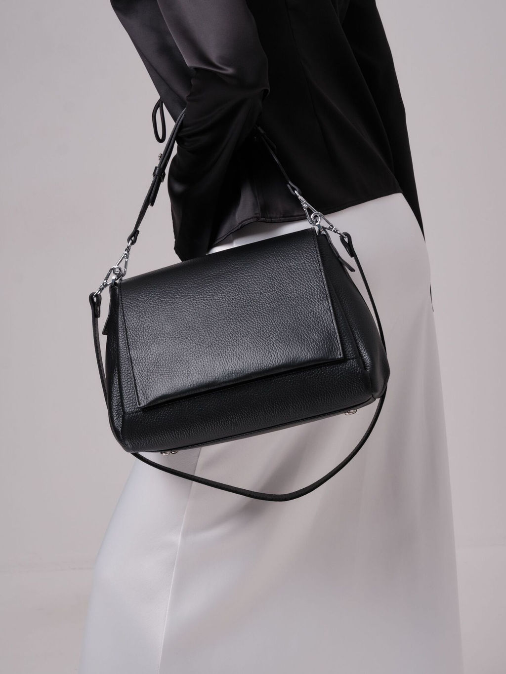 Кожаная женская сумка Deboro 30923 станет отличным дополнением вашего образа и надежным аксессуаром для повседневной жизни. Изготовленная из натуральной кожи, она обладает высокой прочностью и долговечностью. Эта сумка выполнена в аккуратном и элегантном дизайне, что делает её универсальным вариантом как для ежедневного использования, так и для особых случаев. Регулируемый длинный ремень позволяет носить ее через плечо как кросс-боди, освобождая руки. Водонепроницаемая подкладка сбережет изделие от повреждений. Удобный замок обеспечивает быстрый доступ к нужным вещам. Два отделения и внутренний карман позволяют удобно расположить вещи. Использование натуральных материалов гарантирует не только стильный внешний вид, но и функциональность. Эта женская сумка позволит вам выглядеть безупречно в любых обстоятельствах. Если вы ищете идеальный аксессуар для создания образа или подарка близкому человеку, эта модель точно вас не разочарует. -- Характеристики -- Цвет: черный Материал: Натуральная кожа Бренд: Deboro Тип: Сумка на плечо Страна-изготовитель: Россия Высота, см: 22 Ширина, см: 34 Глубина, см: 17 Материал подкладки: Хлопок Количество внутренних отделений: 1 Количество внешних карманов, шт: 1 Тип застежки: Магниты Формат А4: не вмещает Высота ручек, см: 18 Длина плечевого ремня, см: 86 Вес товара, г: 785 Ручки: На плечо;На локоть;Плечевой ремень Пол: женская коллекция Группа товара: Сумки