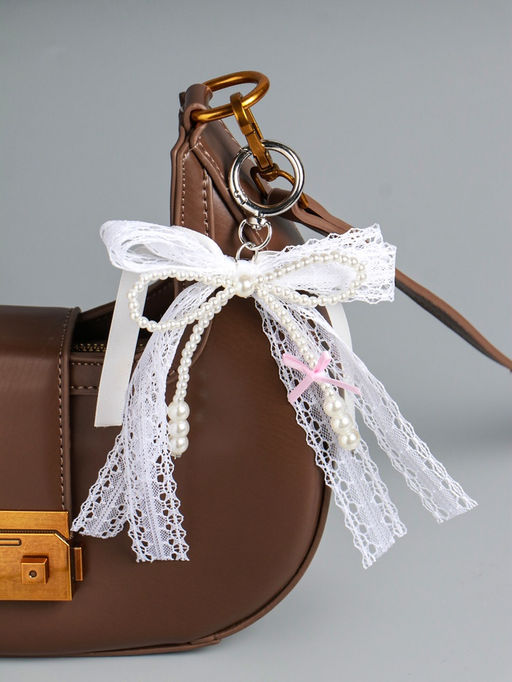 Брелок для ключей на карабине «Жемчужный бант с кружевной тесьмой», бусины d=0.4 и 0.8 см, на сумку, рюкзак, 16×9.5×1 см