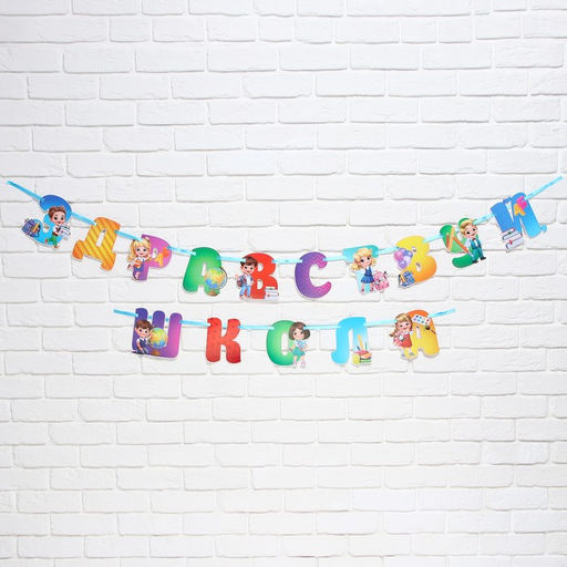 Гирлянда для украшения класса на ленте на 1 Сентября «Здравствуй школа», 300 см.