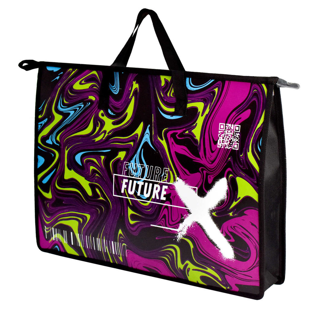 Папка для чертежей и рисунков пластиковая Феникс+, арт. 66301/ 12 КИСЛОТНЫЙ СТИЛЬ (полипропилен, формат А3, 45x33х9 см, 1 отделение (-я), молния, внутренний ПВХ карман, дно с расширением, текстильные ручки, УФ-печать)