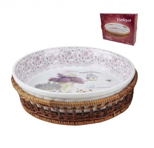 Блюдо керамич. 11" кругл. в плетенке "Лаванда", арт. 1796-496-11 VALLEYA