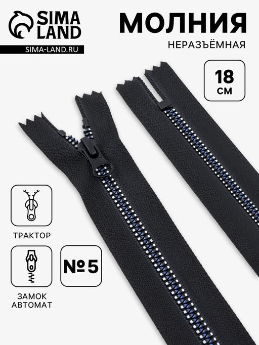 • Цена за 10 шт. Молния «Трактор», №5, неразъёмная, замок автомат, 18 см, чёрная, белая, синяя
